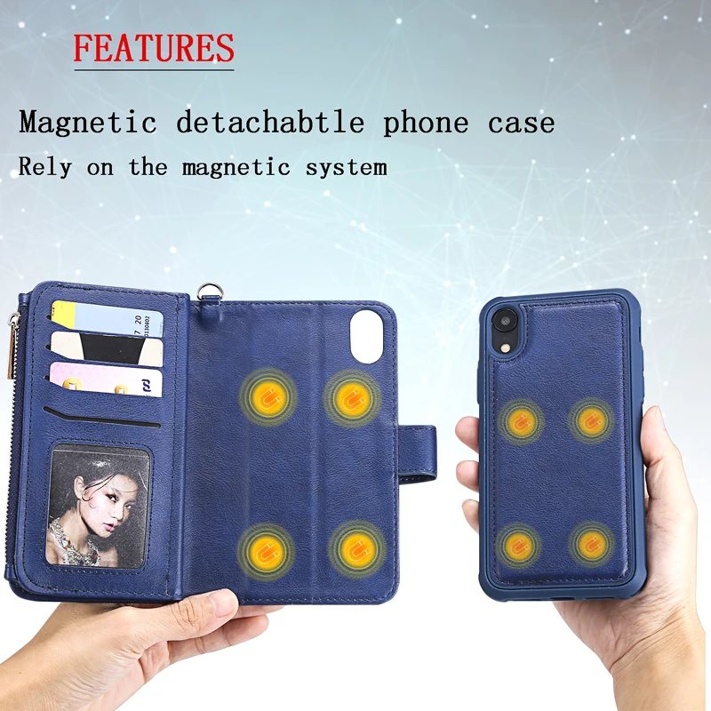 | Luxury Zipper Wallet 2 in 1 Leather Flip Case Phone Soft Silicone Cover Shell Coque Fundas Hull for Apple iPhone X XS MAX XR |