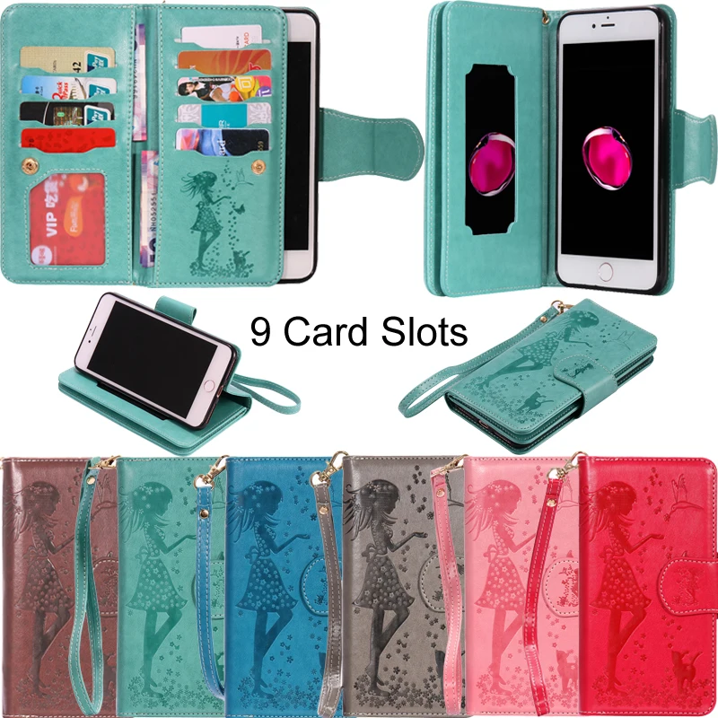 Fashion Women 9 Card Slots PU Leather Flip Wallet Case Soft Phone Bag Cover Shell Coque Fundas for LG K7 K8 K10 NEXUS 5X X Power