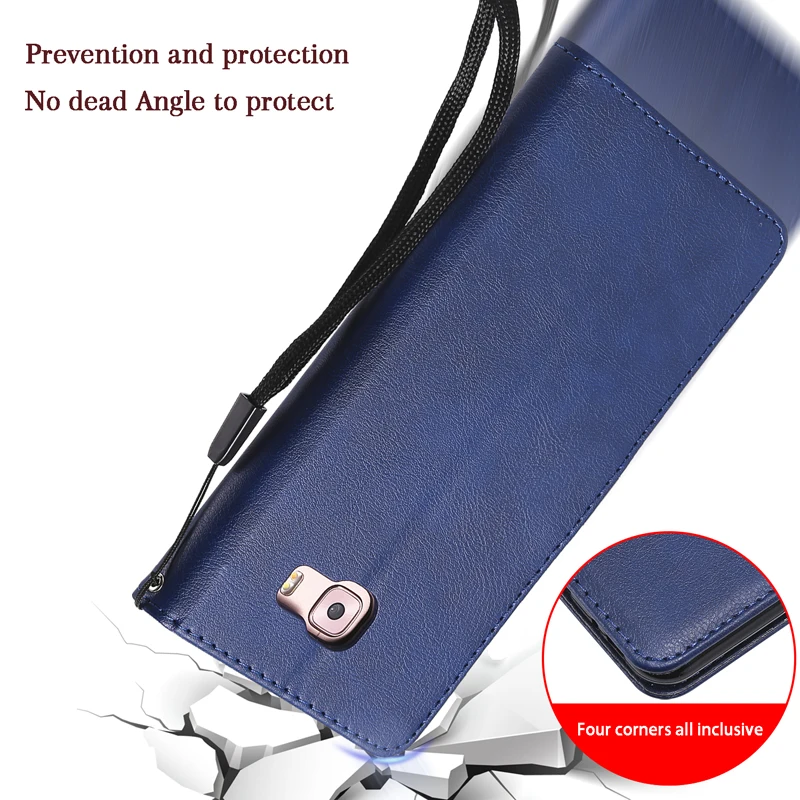 Luxury Plain Leather Case Flip Wallet Soft Phone TPU Silicone Cover Bags Shell Coque Fundas for Samsung Galaxy C9 Pro J4 Core